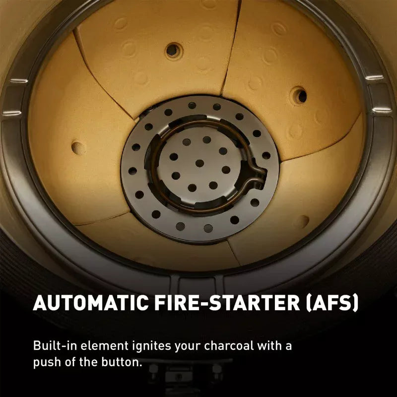 - AFS (Automatic Fire Starter) button eliminates the need to manually light your charcoal with a built-in element to quickly ignite a flame